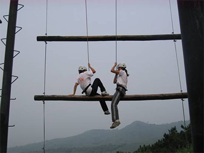 垂直天梯也叫巨人梯,一个以两人共同挑战和团队配合想结合的项目,项目具有一定的难度和心理冲击力,相对需要消耗较大体力。想要获得新高就要相互帮助,既要有甘为人梯的精神,也要吃水不忘挖井人。
